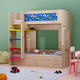 - No booboos. No boo-hoos. Smooth edges and sturdy guardrails make monkeying around safe. Older kids or visiting grandparents will find the lower queen-sized bed perfectly comfortable. Can also be converted into two separate beds once the kids grow up. Easy-to-pull-out drawers below make plenty of room for toys and more. Really, it’s all sorts of smart.