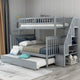 - No booboos. No boo-hoos. Smooth edges and sturdy guardrails make monkeying around safe. Older kids or visiting grandparents will find the lower queen-sized bed perfectly comfortable. Can also be converted into two separate beds once the kids grow up. Easy-to-pull-out drawers below make plenty of room for toys and more. Really, itās all sorts of smart.
