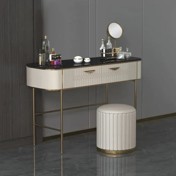 Ira Luxury Makeup Vanity Faux Marble Top Dressing Table With Gold Finish