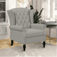 This grandiose wingback armchair is sure to bring an inviting feel to a conversation area, home library or a reading nook. Designed in a classic shape with a high back and winged sides it comes with a thickly padded seat so that you can get comfy and relax. Boasting deep buttoned back and decorative nail heads on the outline the chair timeless style fits right in all modern, as well as traditional settings